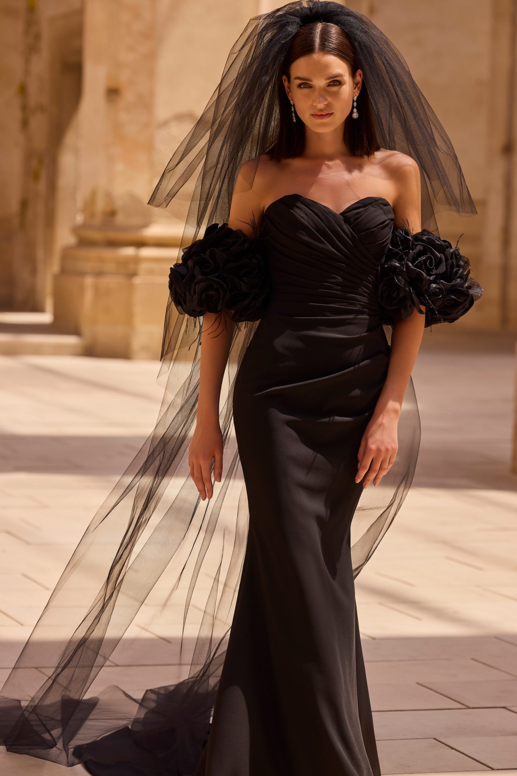 Designer: Veni Infantino Bridal Style code: 63002 Size: 22 Colour: Black Fabric: dresses with colour