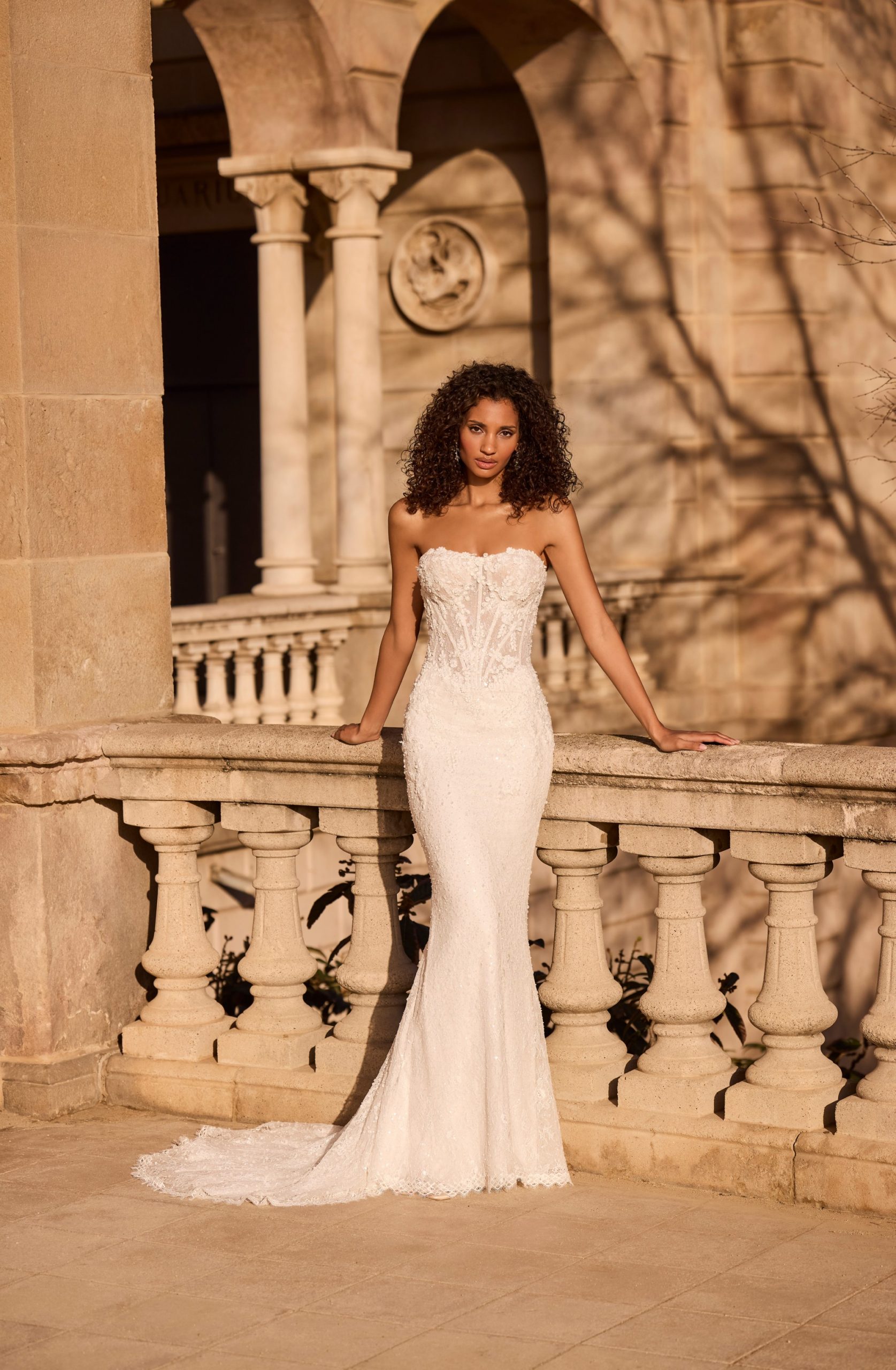 Designer: Veni Infantino Bridal Style code: 63175AF Size: 12 Colour: ivory Silhouette / shape: fitted Neckline: strapless Fabric: full lace
