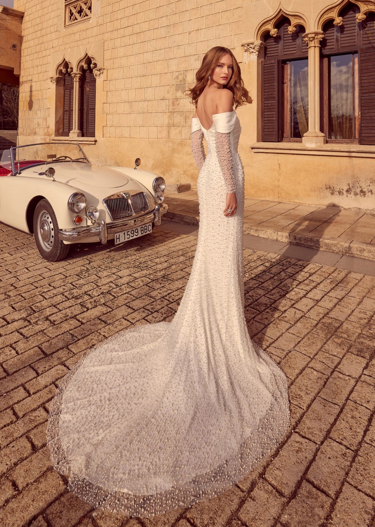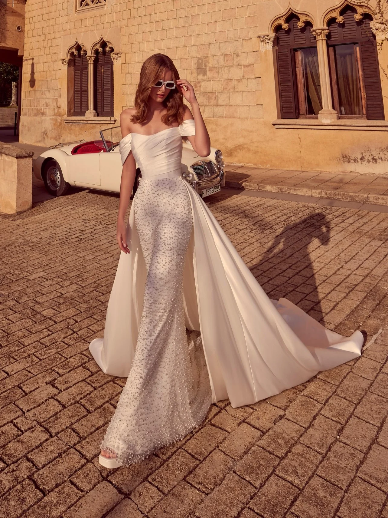 Designer: Veni Infantino Bridal Style code: 69979 Size: 12 Colour: ivory Silhouette / shape: Fitted Neckline: strapless Fabric: pearl/satin